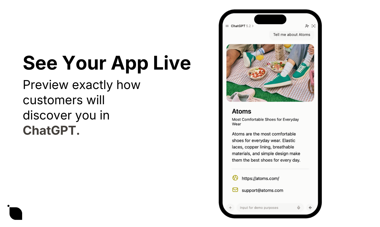- Preview Feature: You can see exactly how your business will look inside the ChatGPT interface.
